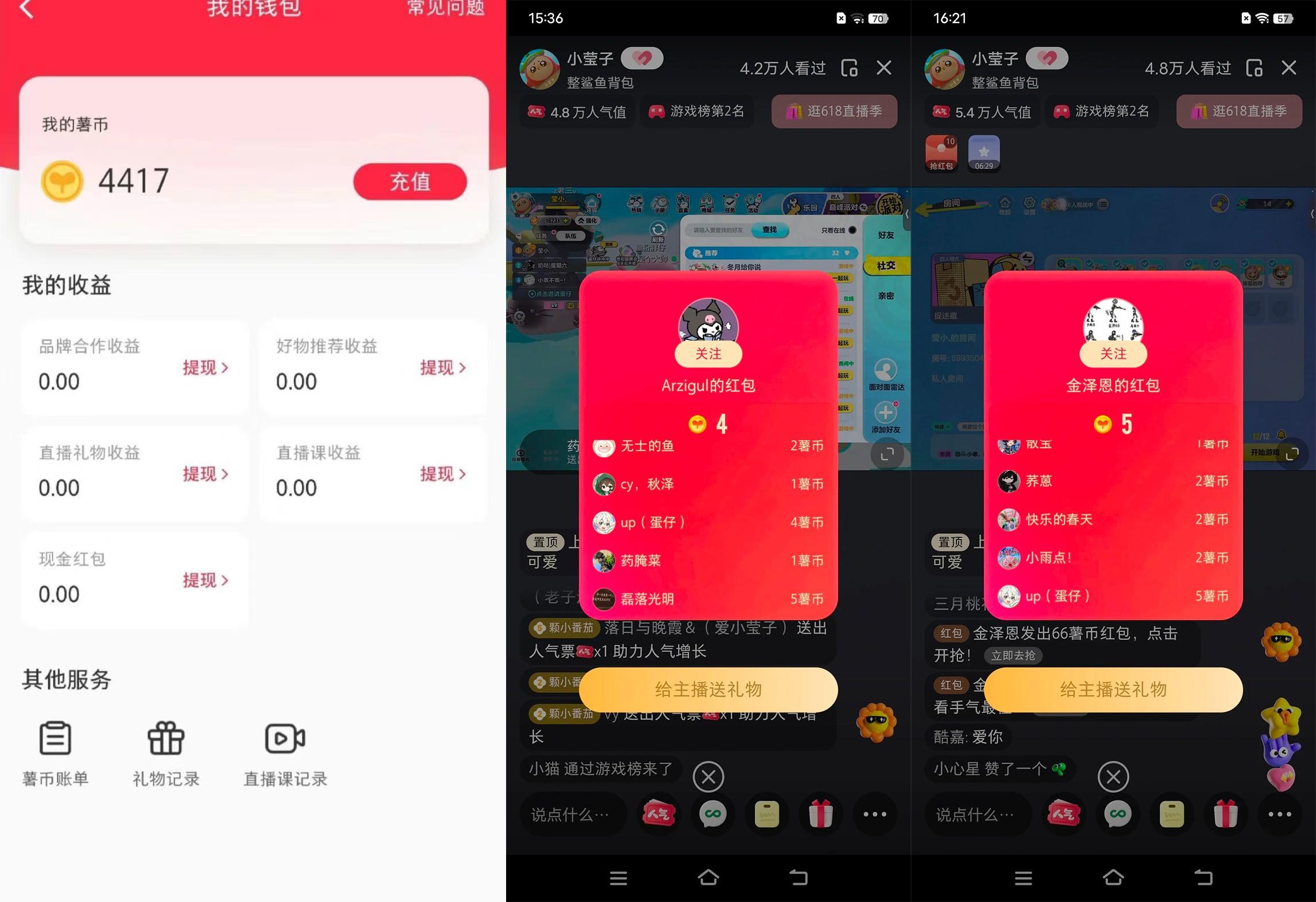 小红书上的直播间,主播为了积累人气,一般都会发放红包,红包里面都有薯币,我们通过科技在直播间全自动抢红包,科技自动识别有红包的直播间,自动抢,24小时不停