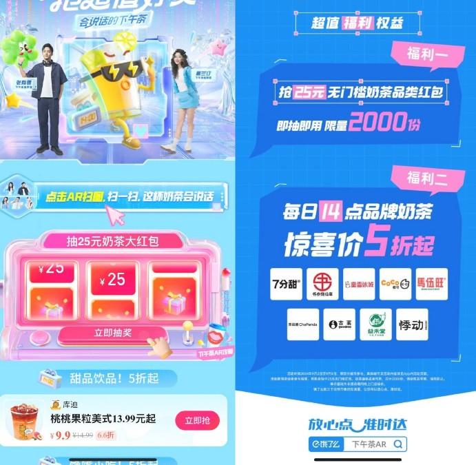 饿了么下午茶抽25亓奶茶红包