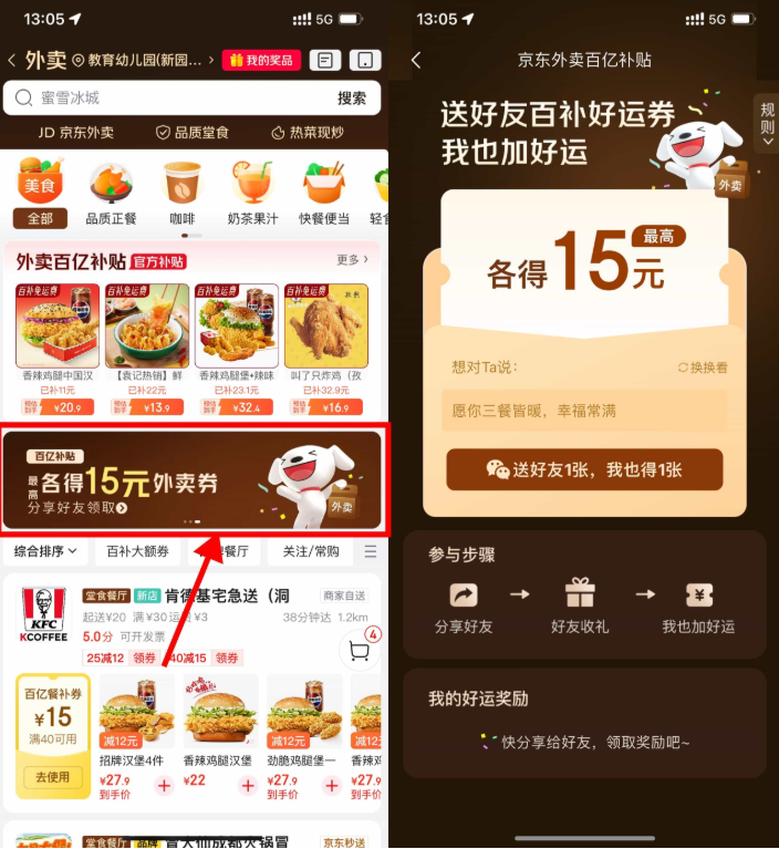京东搜索“秒送补贴888”->点横幅进入->分享好友 均可得16亓外卖券 和 2-1亓叠加券,就是点外卖立减17亓