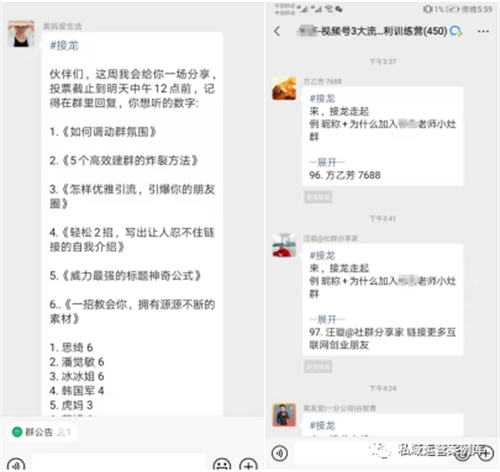 群内拼团、秒杀、报名课程、预约直播等等活动,都可以通过接龙的社群互动小游戏,把整个社群群气氛引向高潮!