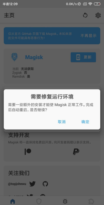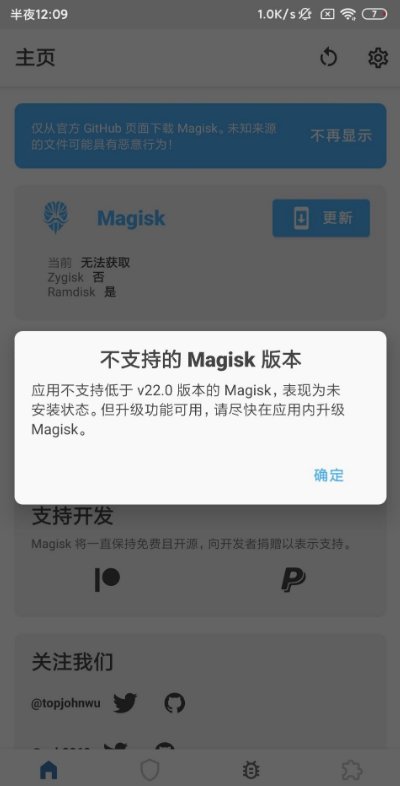 第一步安装magisk-安装后打开显示如下图所示