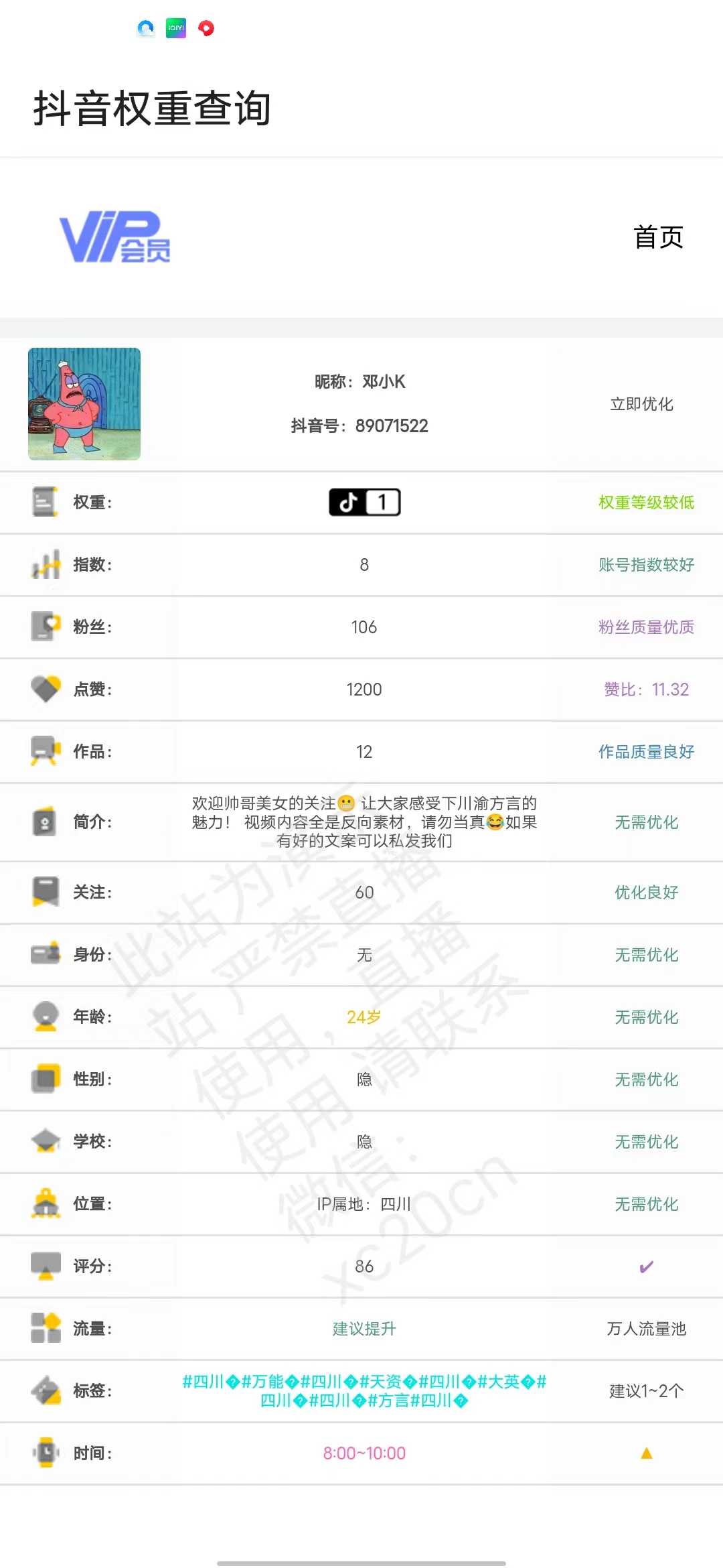 鲸落APP-抖音权重免费查询