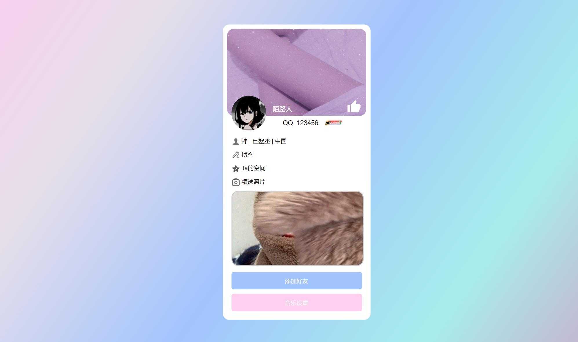 超漂亮的个人主页仿QQ资料单页HTML引导页