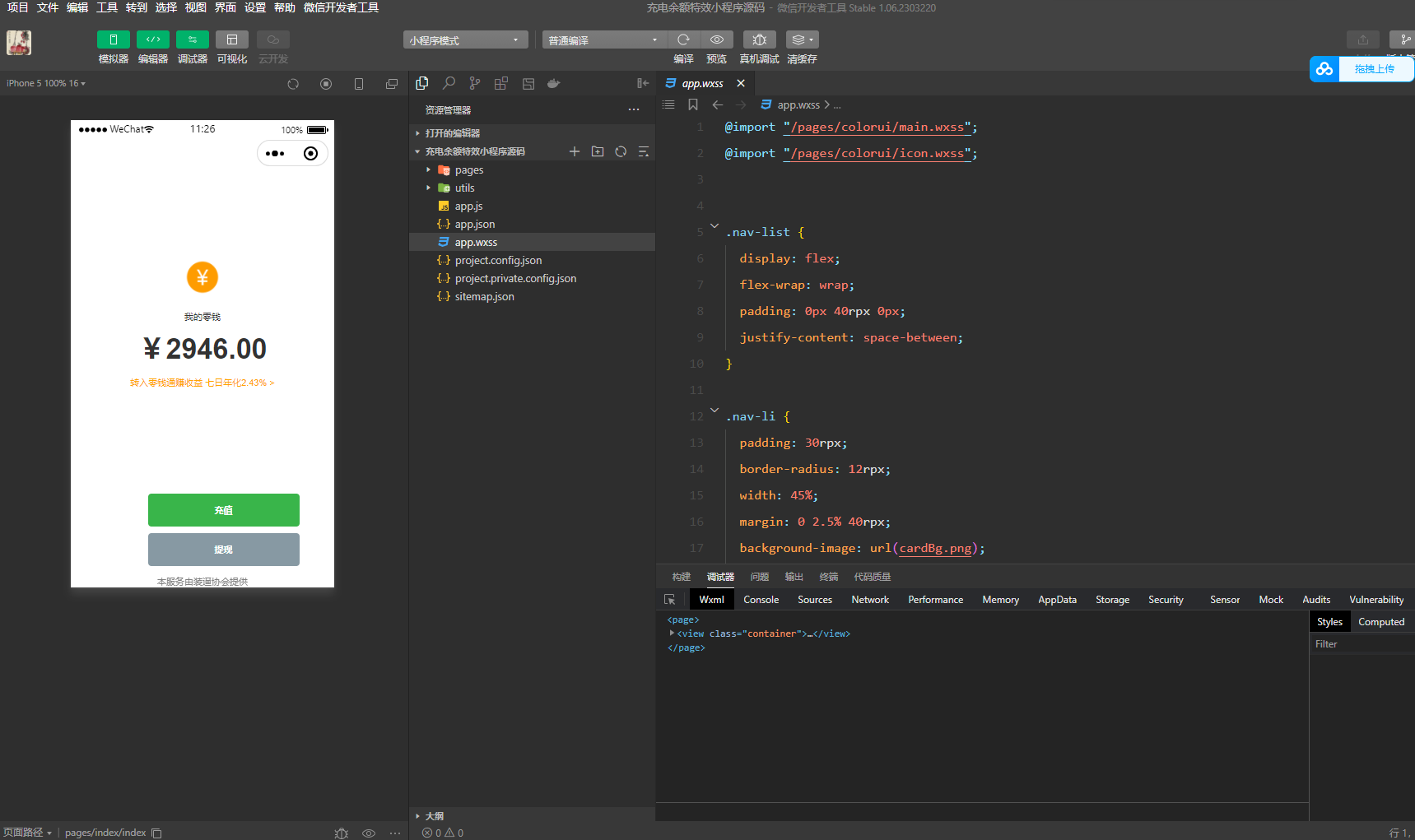 微信余额充电器特效小程序源码