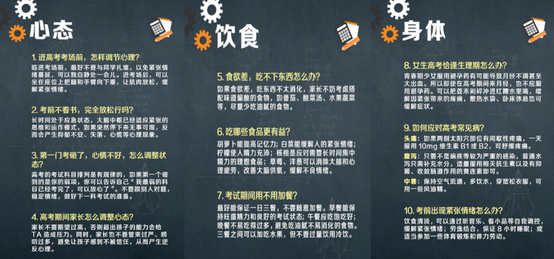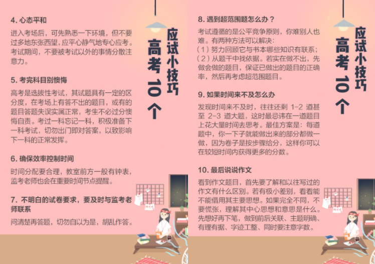 ⑤清淡、规律饮食是营养学家公认的高考生的饮食方案,晚餐后可以散个步轻松一下。