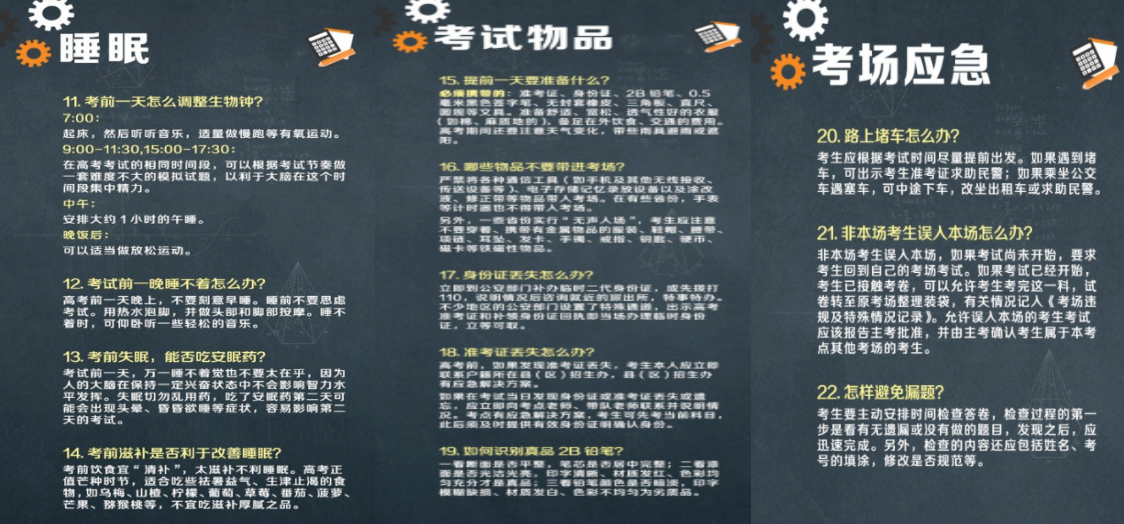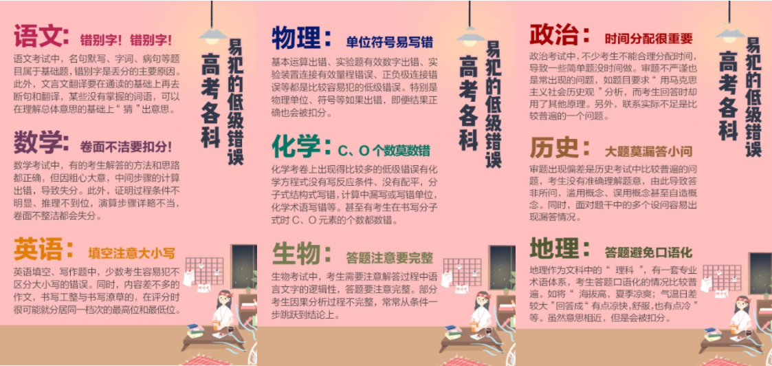 高考各科注意事项