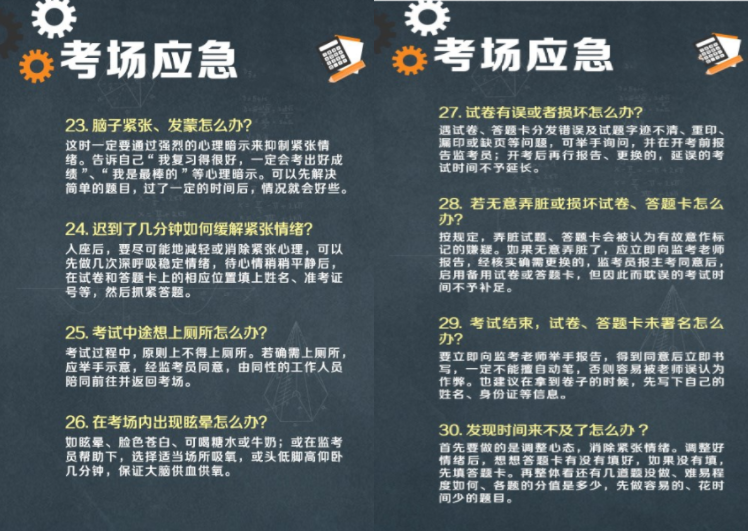 ③带齐证件和考试必备用品,如果准考证丢失立即向老师讲明情况。