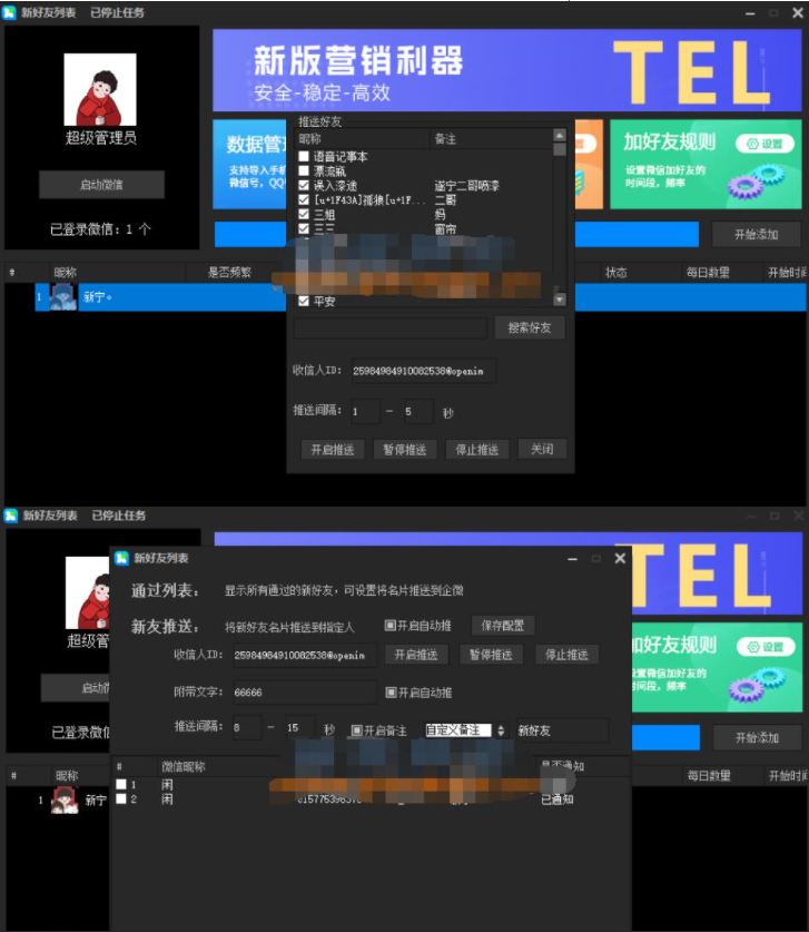 微信多开、添加手机号/微信号/QQ好友、设置随机验证语、设置加好友时间段/频率