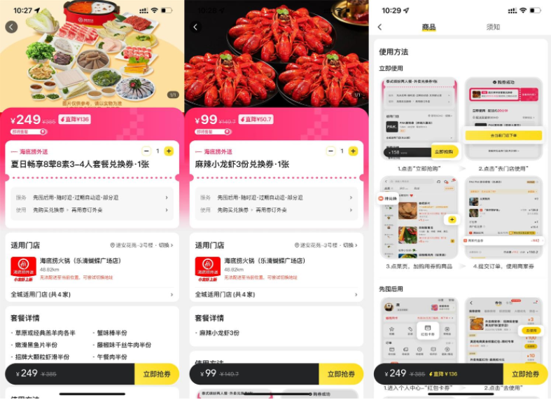 美团外卖249元购海底捞4人餐