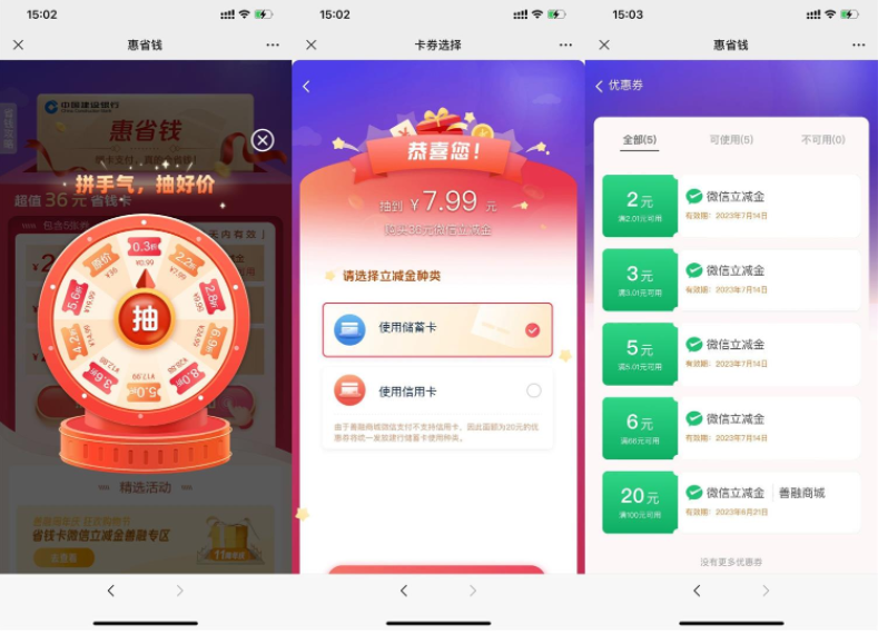 建行惠省钱抽折扣买16元立减金