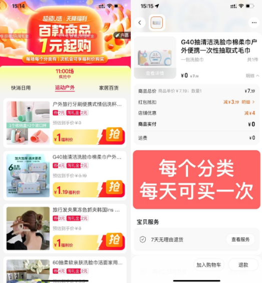 淘宝天降福利1元撸实物包邮