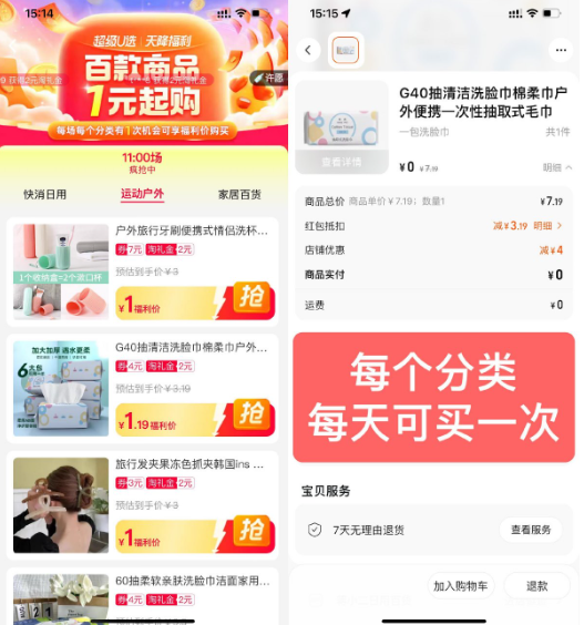 淘宝天降福利1元撸实物包邮