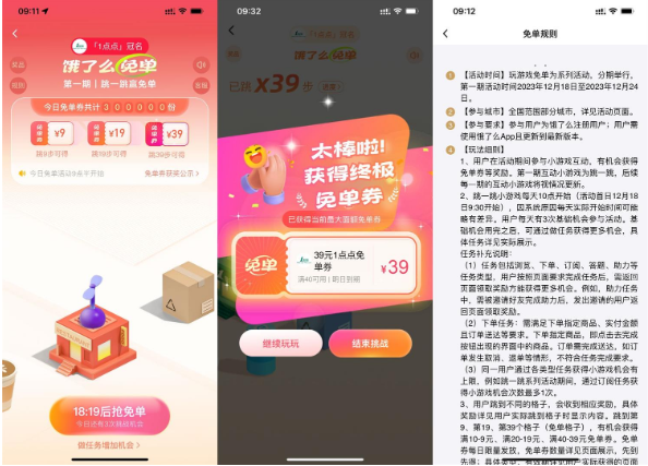 饿了么跳一跳赢最高39元免单