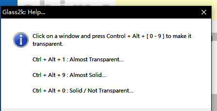Glass2K:软件窗口变透明,可使用快捷键Ctrl+Alt+1...9调节窗口透明度。