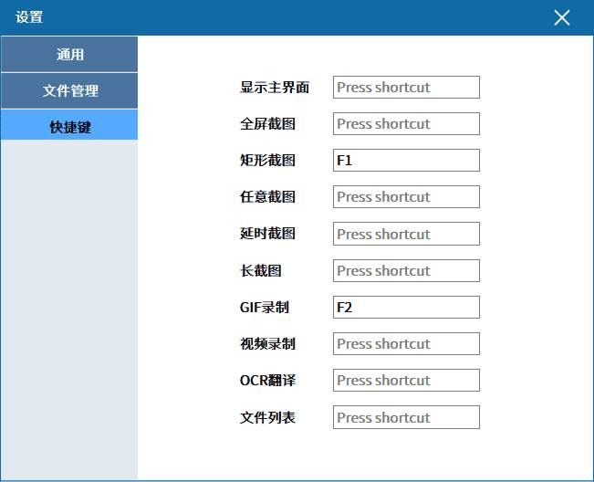 右键可以设置各种截图、录制操作的快捷键。