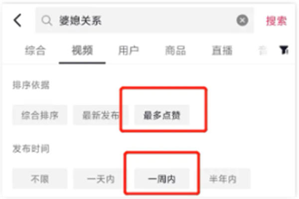 抖音搜索框内输入“厌学”这个关键词,选择栏目“视频”,设置筛选条件为“点赞最多”“近一周内”的作品。