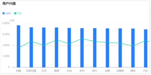 TGI指数表明不同特征用户关注问题的差异情况,其中TGI指数等于100表示平均水平,高于100,代表该类用户对某类问题的关注程度高于整体水平。