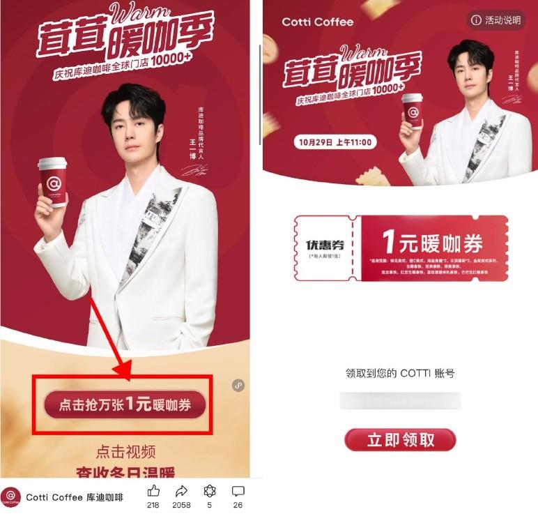 库迪咖啡11点抢1万张试饮券