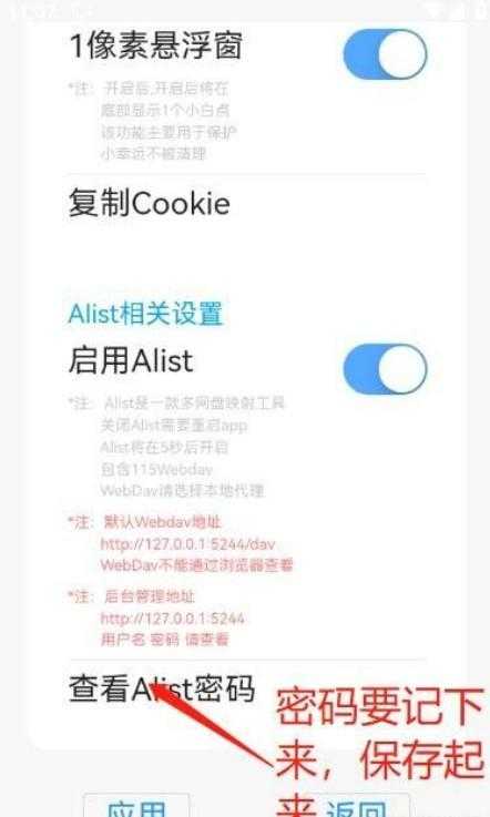 当115小幸运APP开启ALIST、也添加配置好存储后。就可以开始在客户端以下设备挂载。