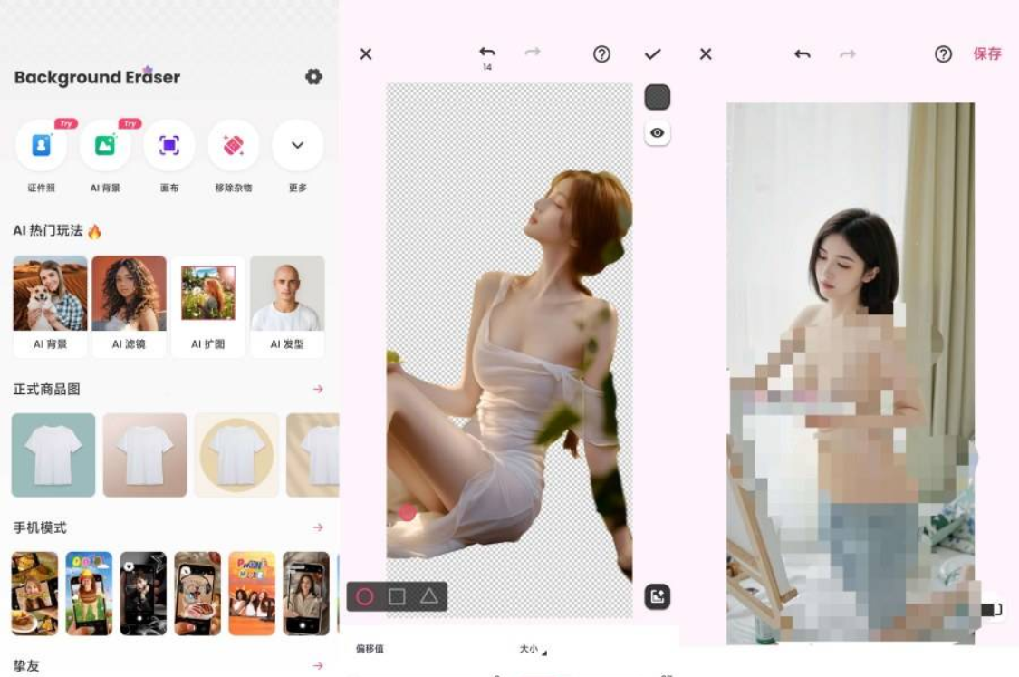 AI消除衣服需要一步步来,大体上是可以消除的,遇到黑屏警告返回继续试探就行。