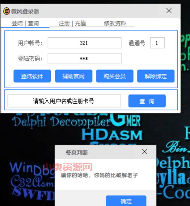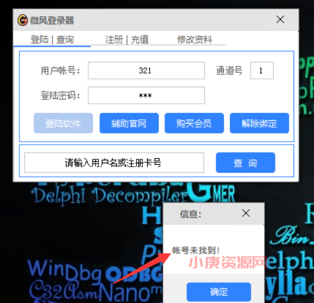 软件主界面长这样,输入假码点登录会弹一个信息框提示“账号未找到”