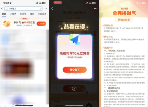 支付宝18财富日领高德10元券