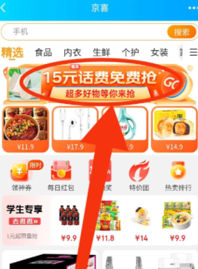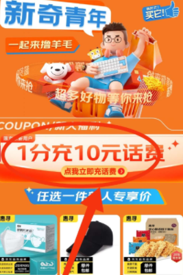 6.点开之后进在界面中间有一个一分钱充值10块钱话费