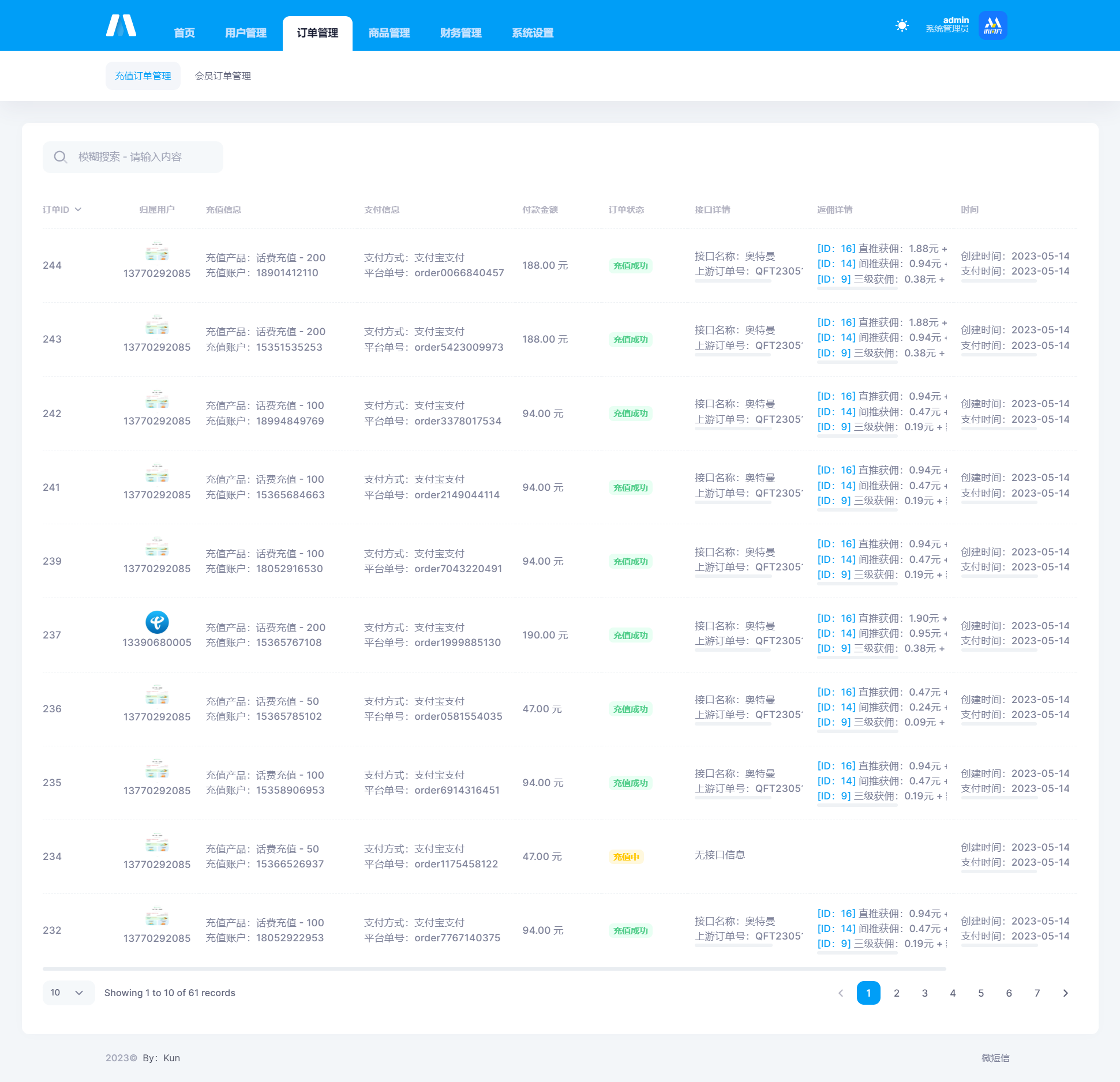 系统基于thinkphp框架开发,功能已全完善,可灵活对接其他上游渠道接口,默认对接了大猿人接口,另外可无限制自定义创建充值页面,首页支持后台自定义修改,支持三级分销,系统开源分享(原因:本套系统是帮客户开发的,但是客户结尾跑单了,没结算尾款,所以直接分享了!)