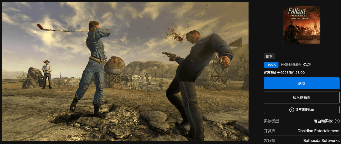 Epic免费喜+1《辐射:新维加斯 - 终极版》