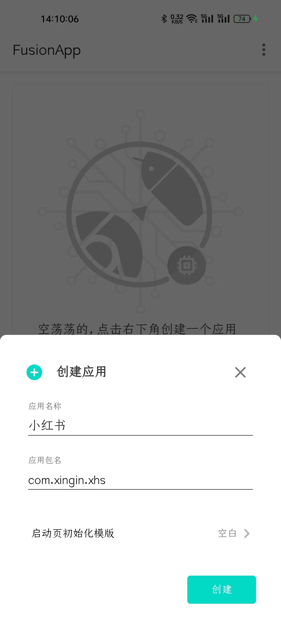 3.在Fusionapp中新建安装包,包名为com.xingin.xhs,名字可以随意。