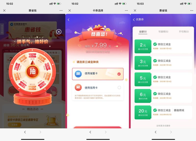 建行惠省钱抽折扣买16元立减金