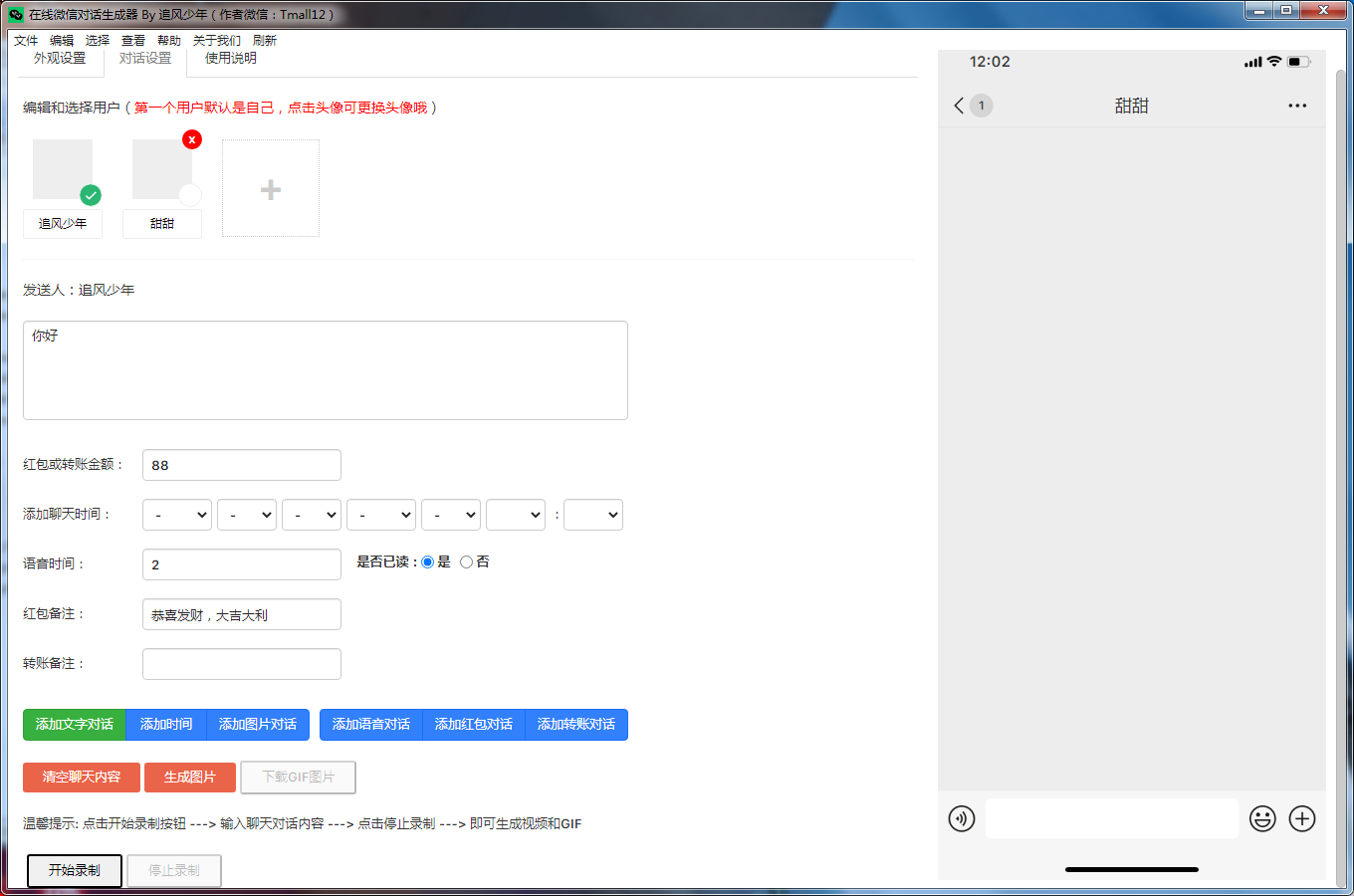 微信对话生成器具有许多强大的功能。首先,它支持添加不同的用户角色进行对话。我们可以自由设定对话的参与者,并为每个角色添加自定义的头像和昵称,使对话更加真实。