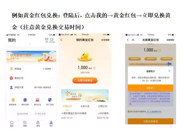 2、登录->首页中间“钱大掌柜10周年”->做任务赢金条->点击签到->抽奖即可->必中黄金->必中黄金 值多少钱我也不知道,自己研究一下