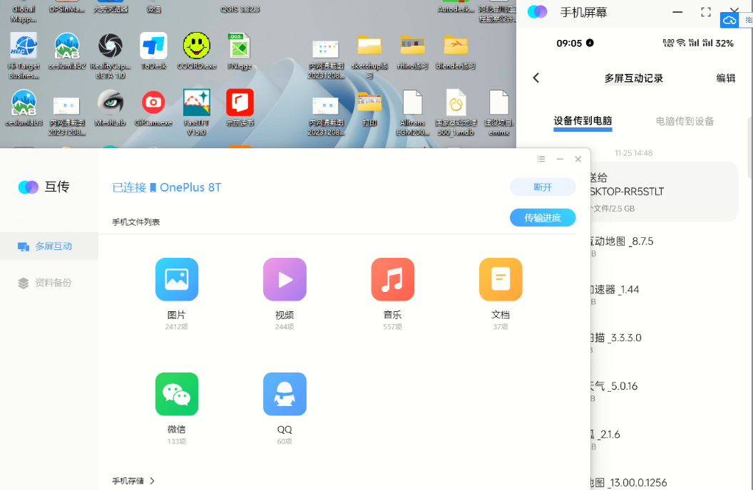 可以通过Wi-Fi在电脑和手机间互传数据,告别数据线。还可以做手机备份和手机屏幕投射。蓝厂出品