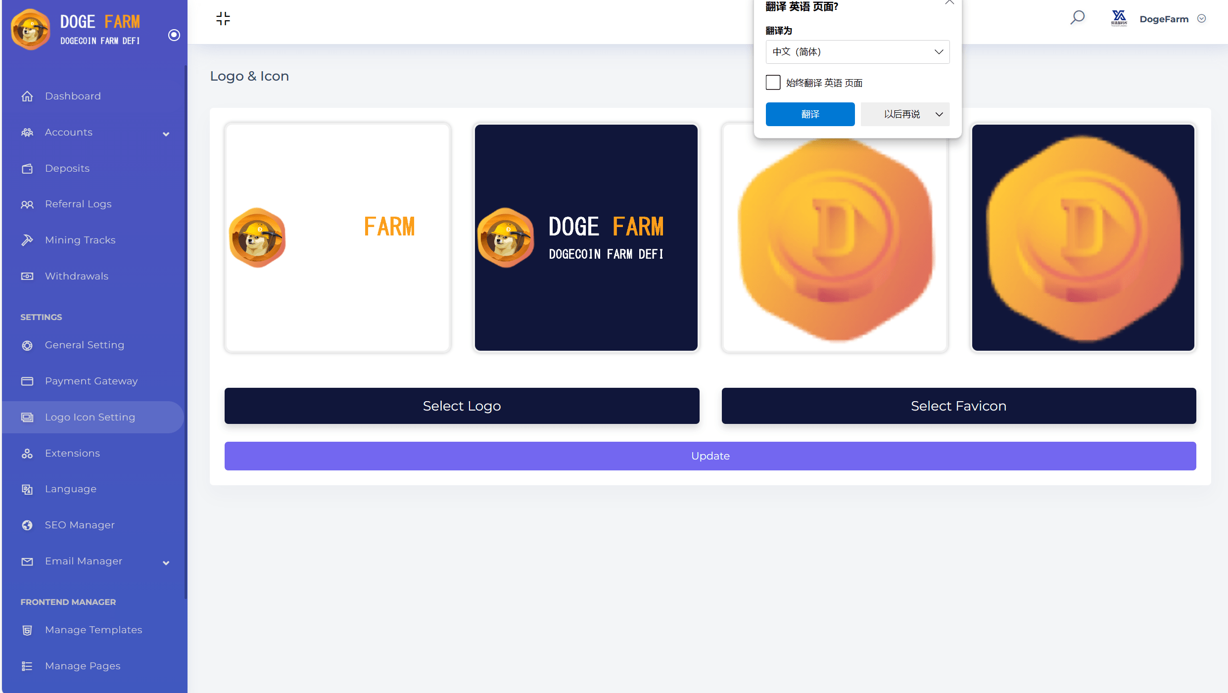 全新PHP系统开发,支持添加多语言,默认是英文版,截图是浏览器自动翻译