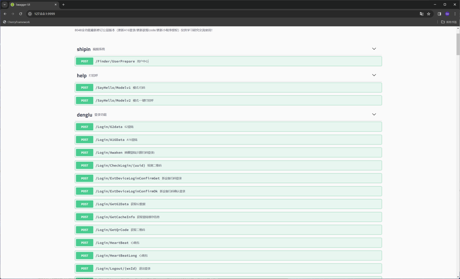 3、运行后出现http://:9999字样说明成功了,浏览器访问127.0.0.1:9999即可食用!