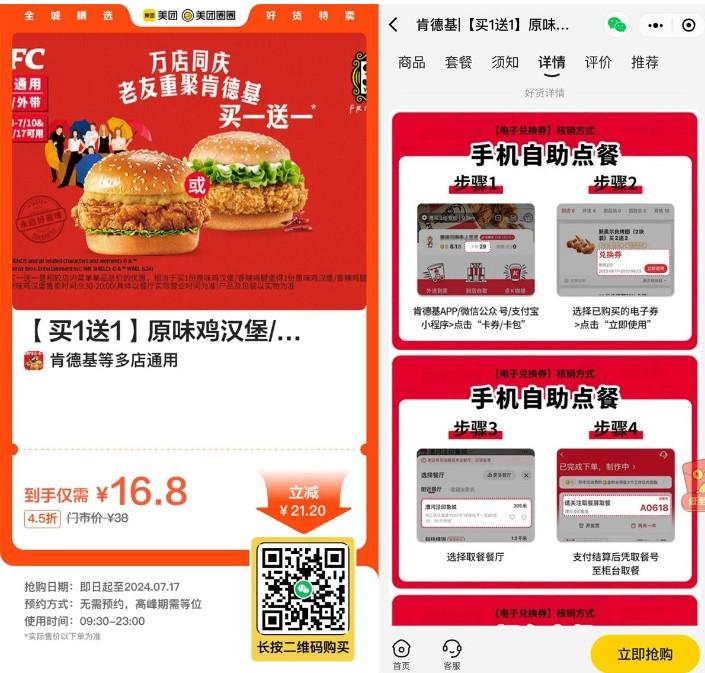 16.8亓买肯德基鸡腿汉堡2个